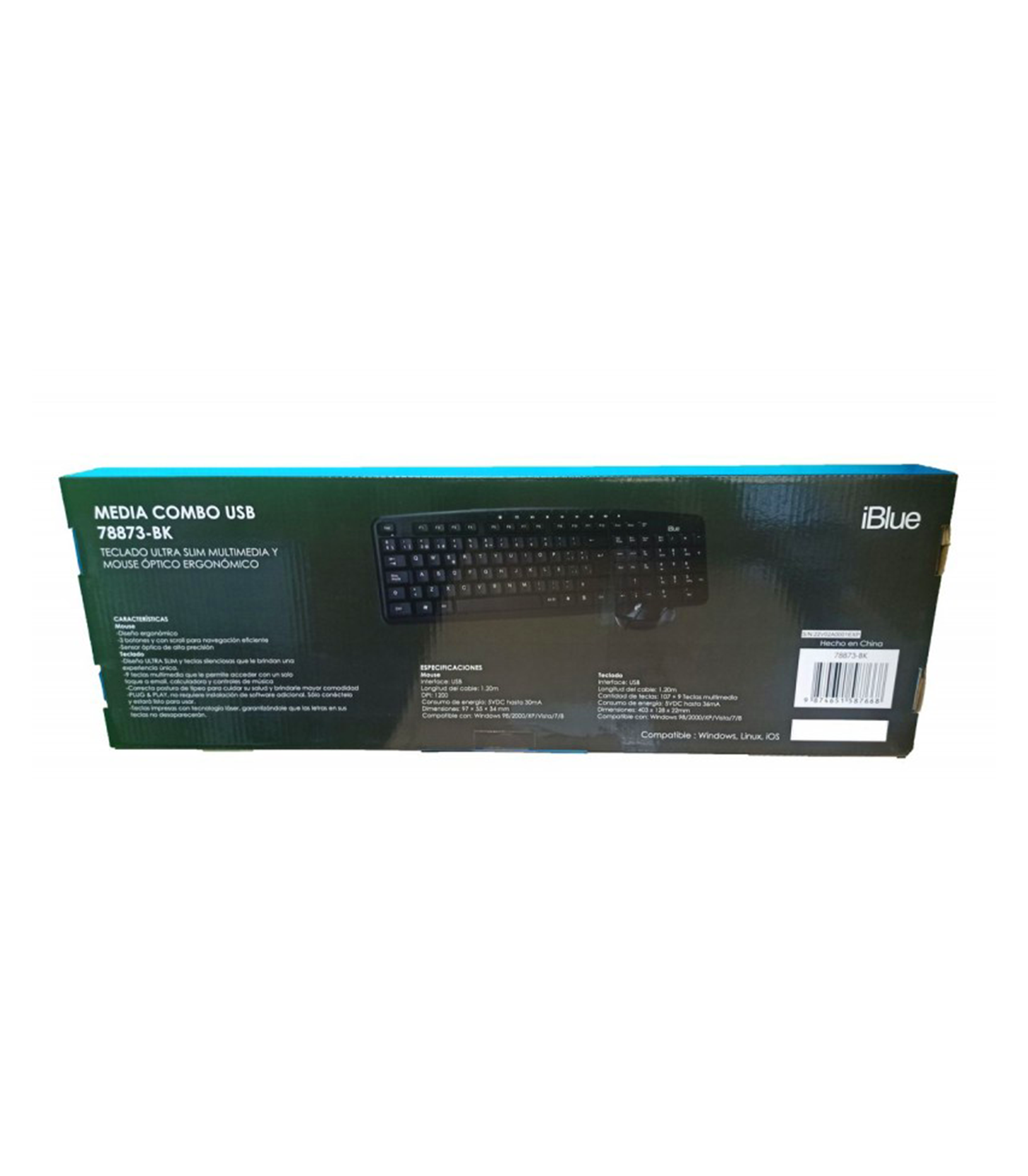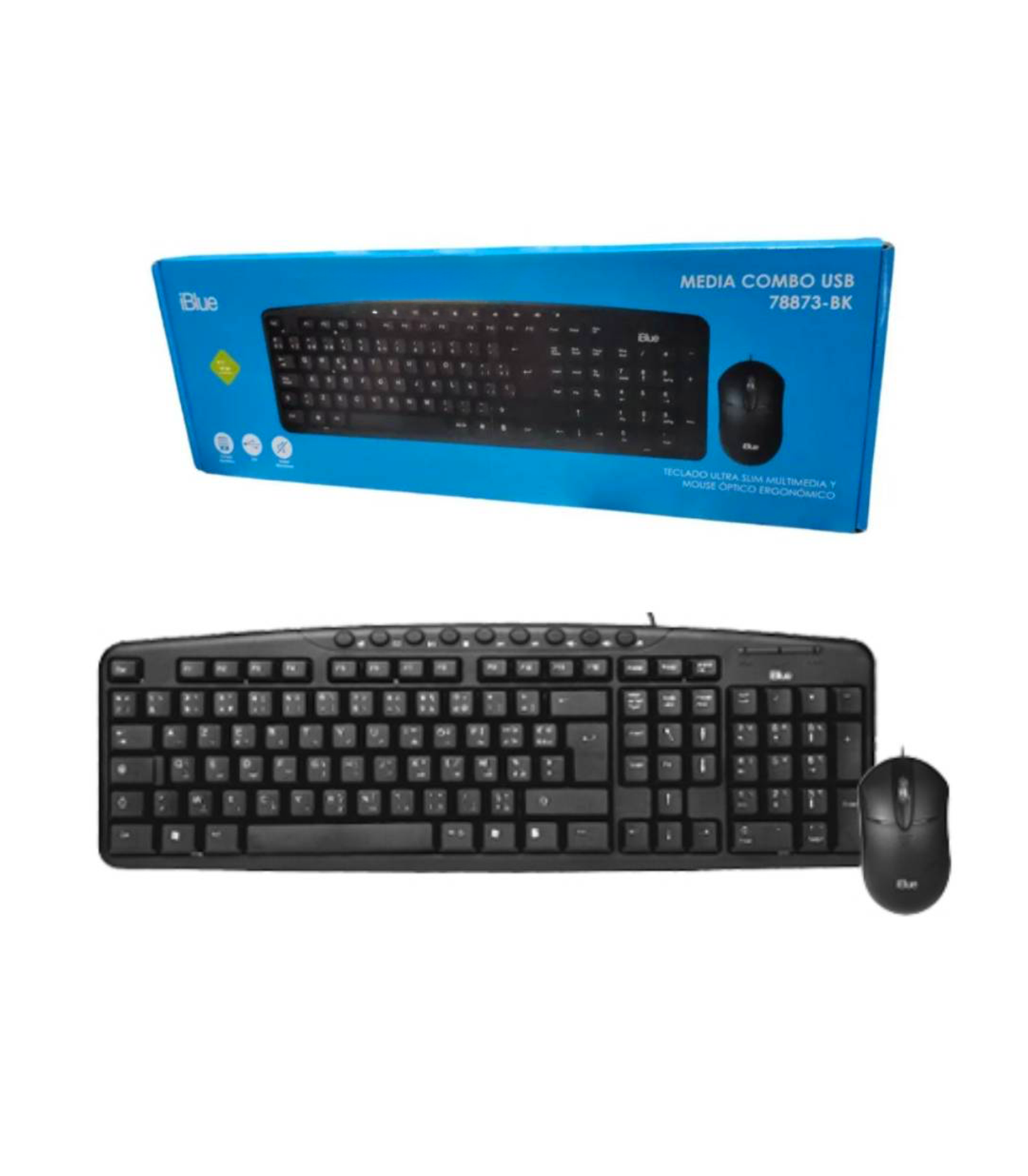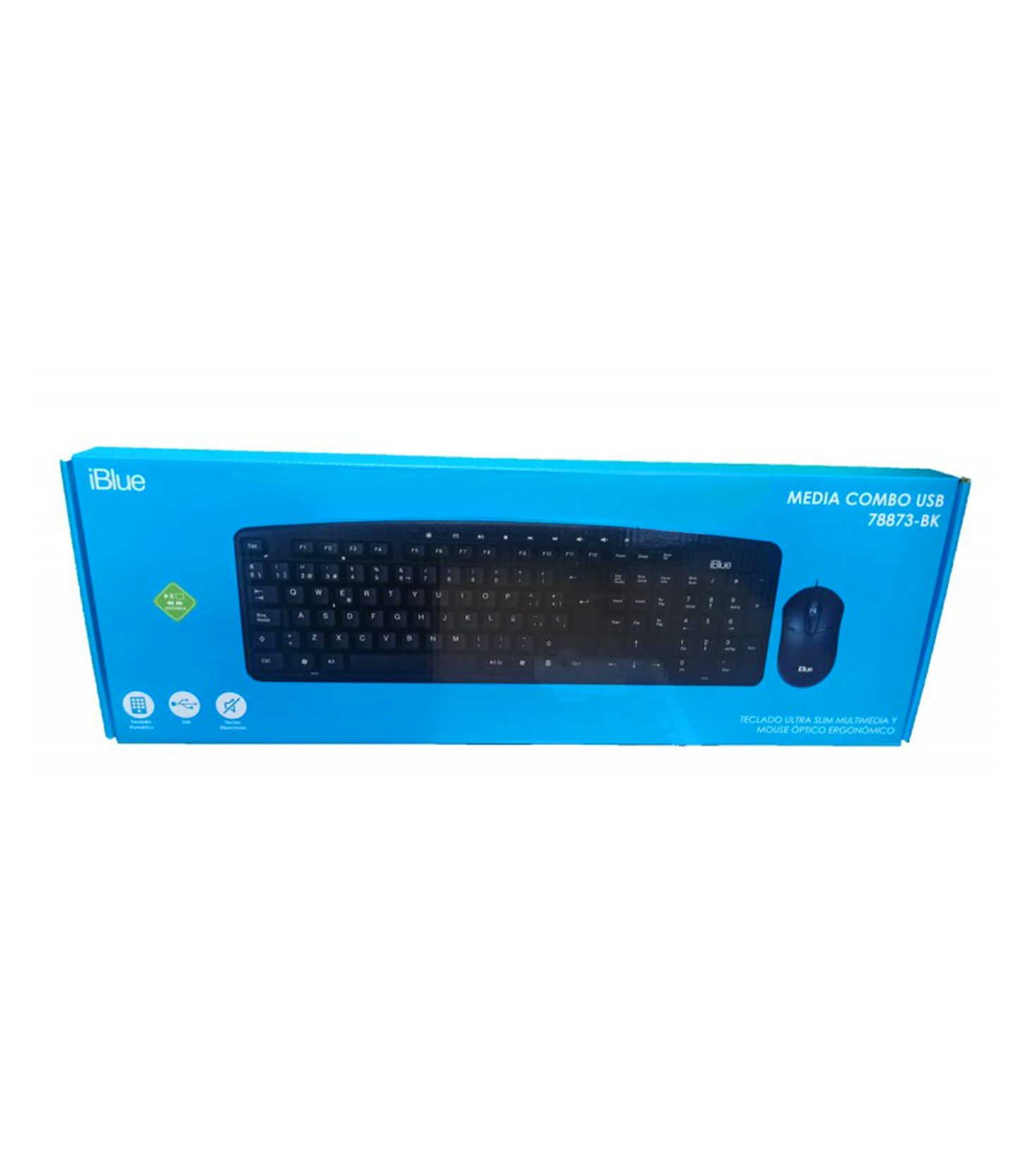 El teclado y mouse IBLUE 78873-BK USB es la solución perfecta para tu computadora. El teclado es ergonómico y silencioso, mientras que el mouse es óptico y preciso. Ambos dispositivos son fáciles de usar y conectar, y están disponibles en color negro.