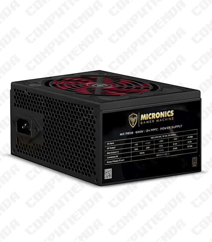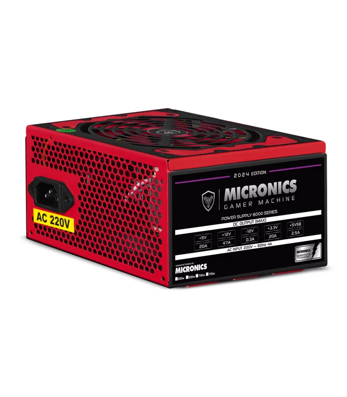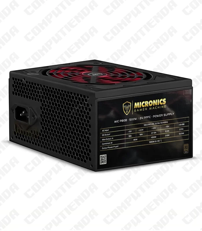 Fuente de Poder MICRONICS P5000, 500W, P8, PCIe, 20+4 Pines, Cables Enmallados, 1 FDD